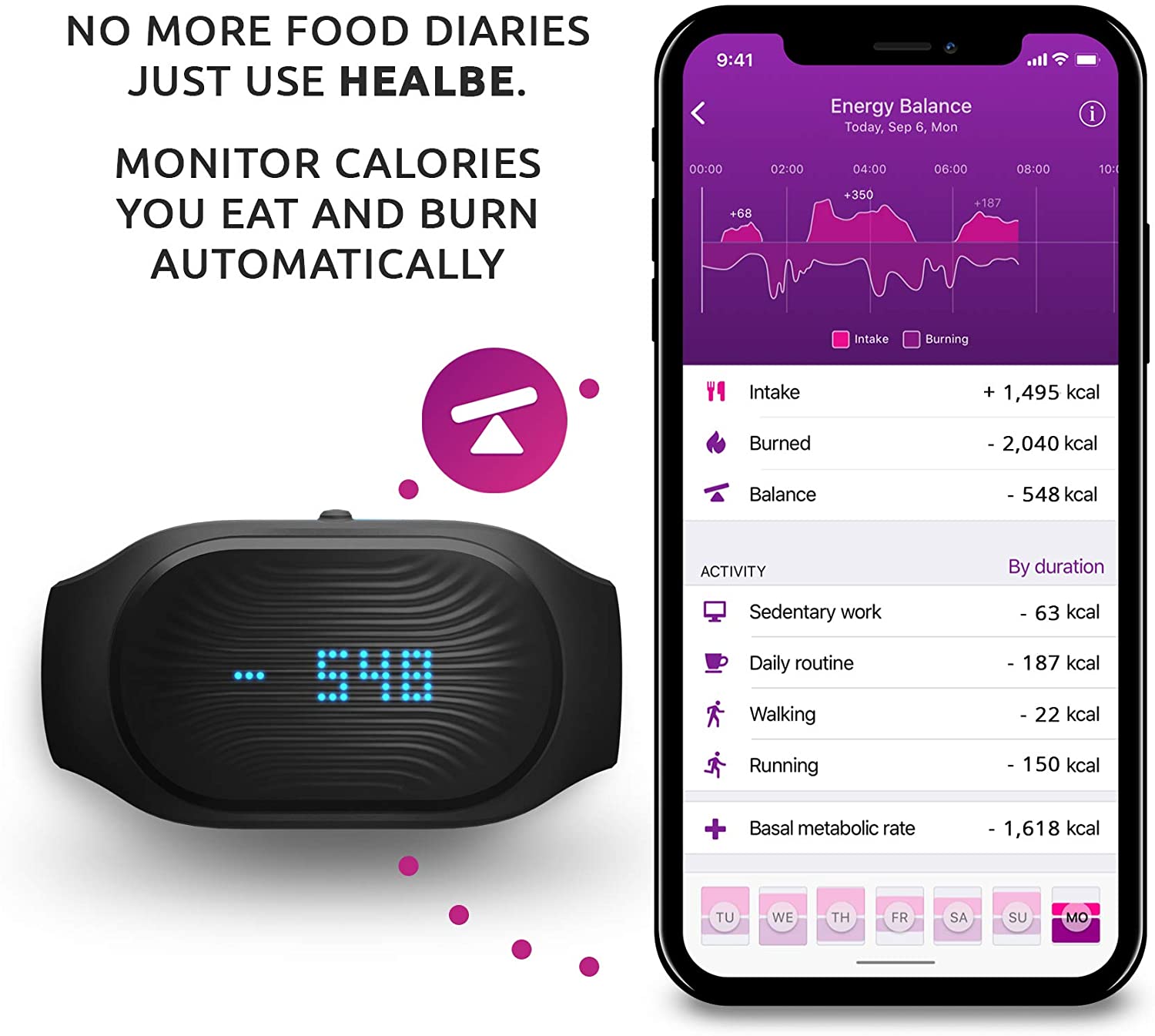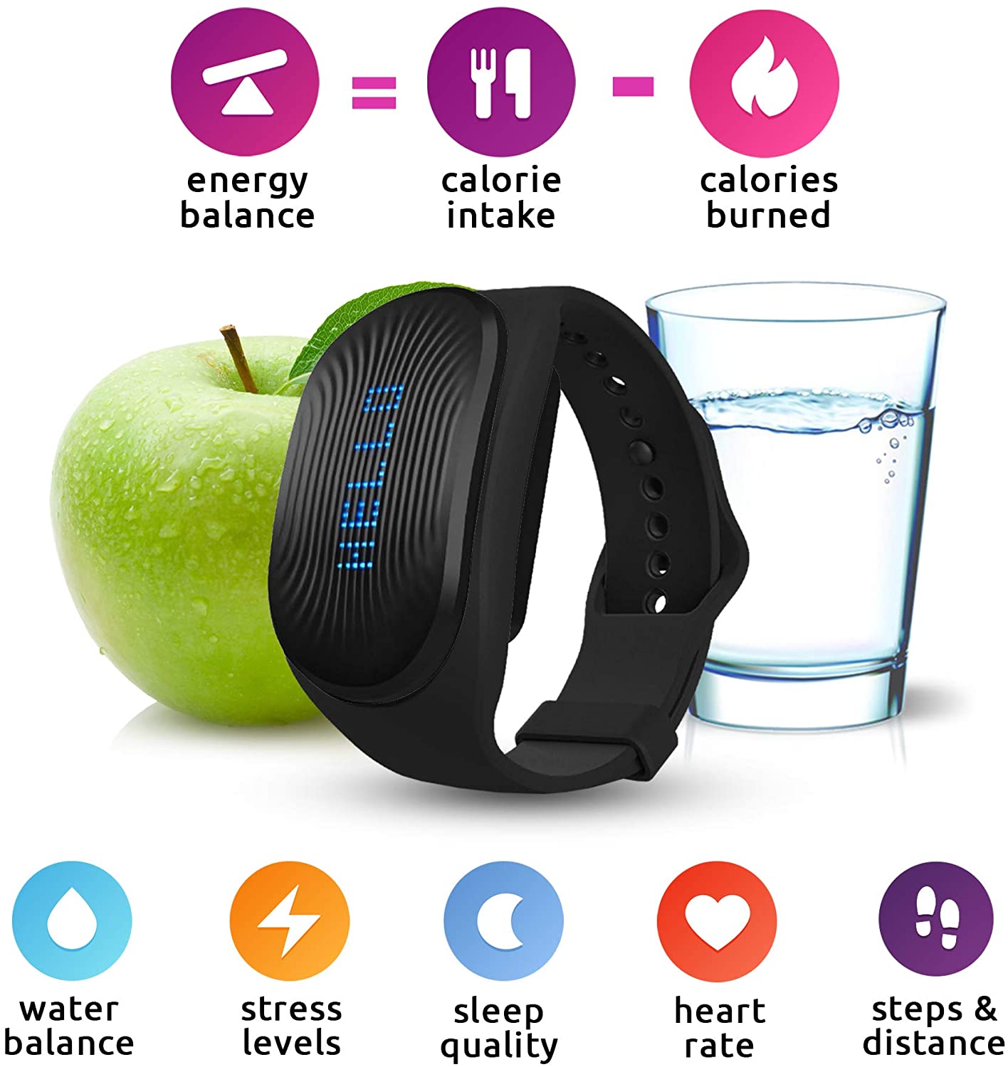 GoBe2 Weight Loss Fitness Band by Healbe. Monitors 8 Key Health parameters: Calorie Intake/Burn/Balance, Hydration, Stress, Sleep, Heart Rate, Activity and Step Pedometer