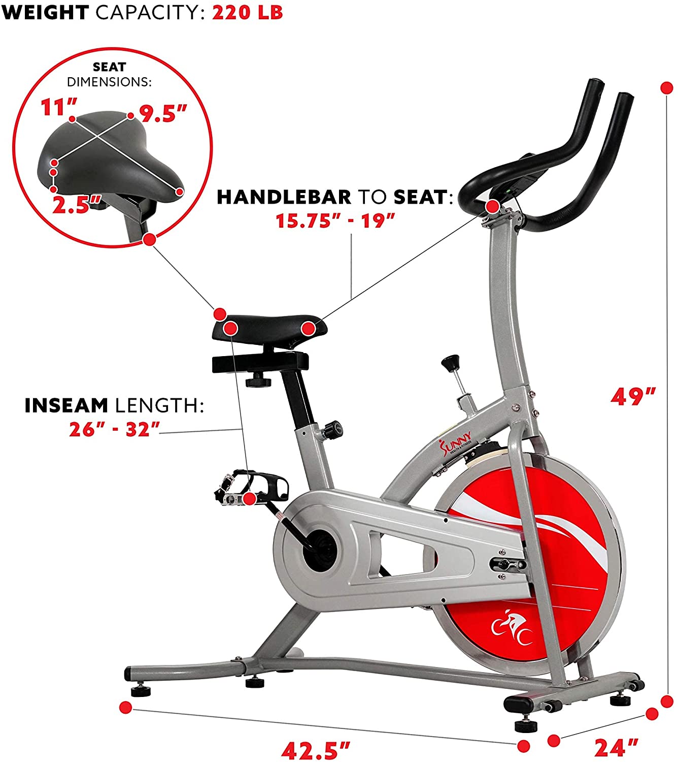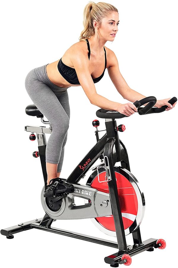 Sunny Health & Fitness Indoor Cycle Exercise Bike with Heavy Chrome 49 LB / 22 LB Flywheel