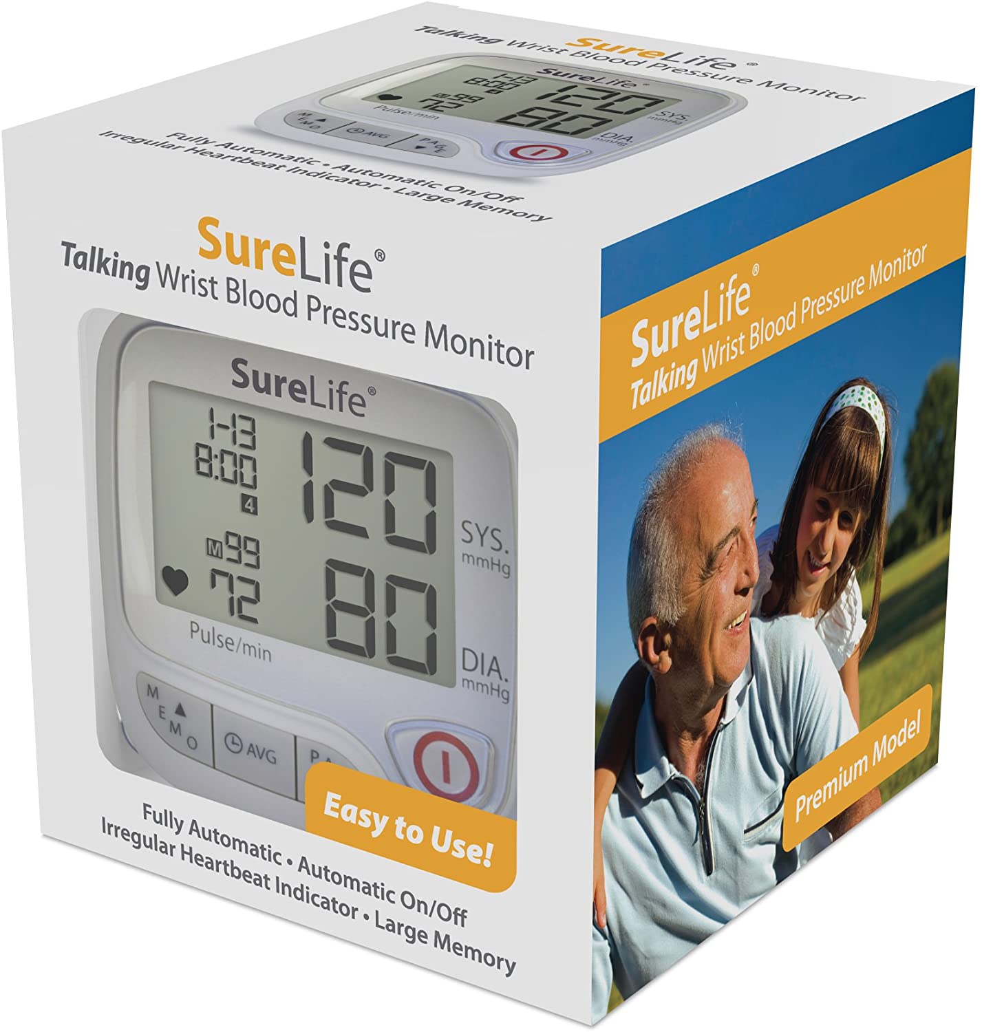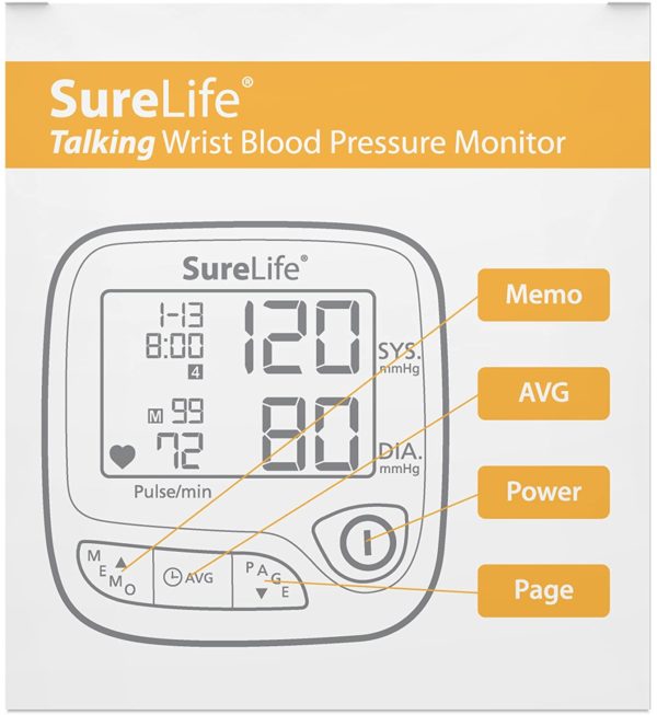 SureLife premium talking wrist blood pressure monitor. Talking. Fully automatic. Irregular heartbeat indicator.